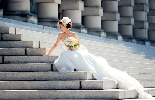 Mika's bridal bouquet was a neutral palette using gardenias, orchids, roses, hydrangea and calla's. She wanted to create a rustic element to it, so we looped branches into the design.